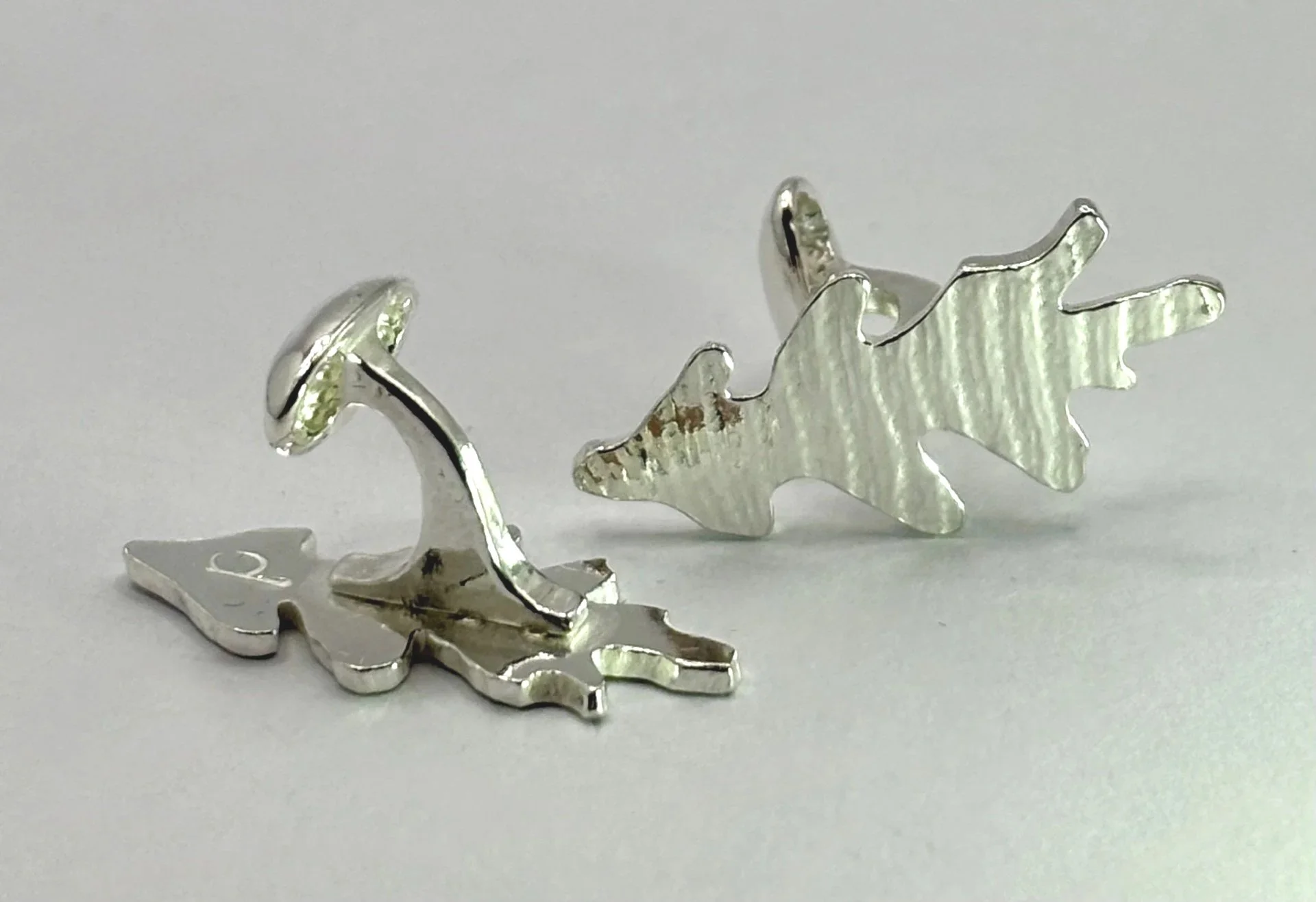 Organic Sterling silver leaf-inspired cuff links featuring beautifully milled striations and refined curves, creating a masculine yet sophisticated statement pair.