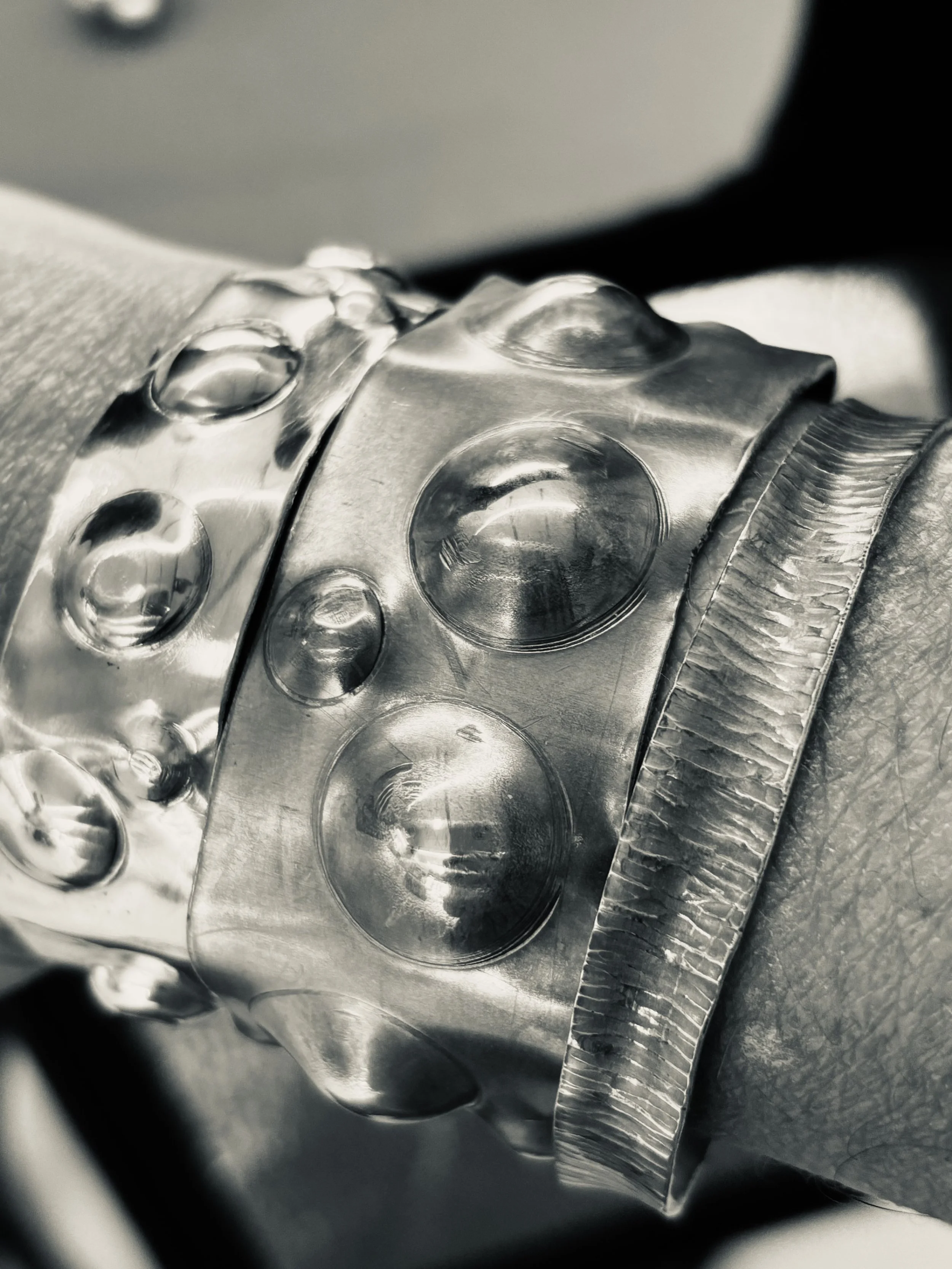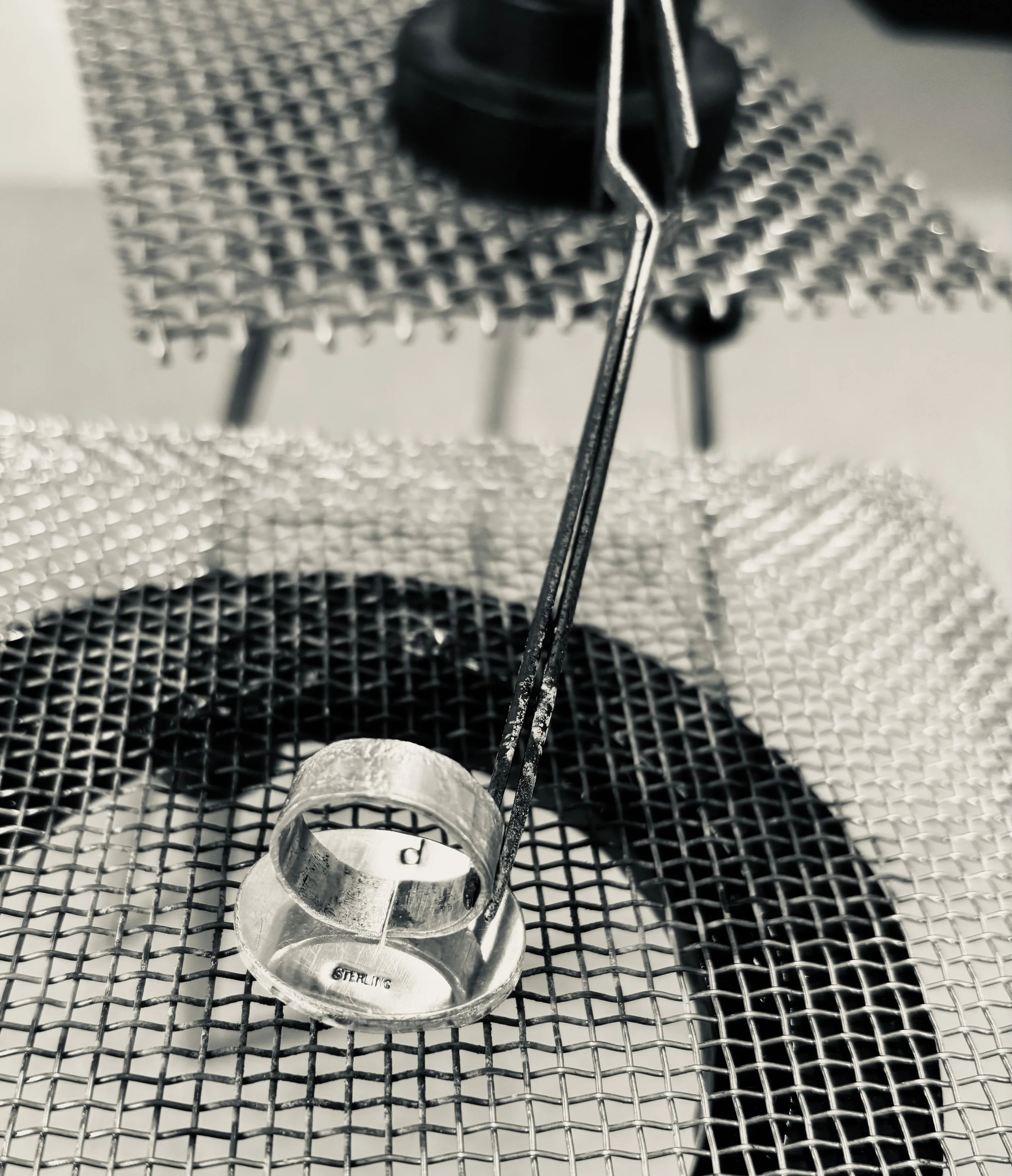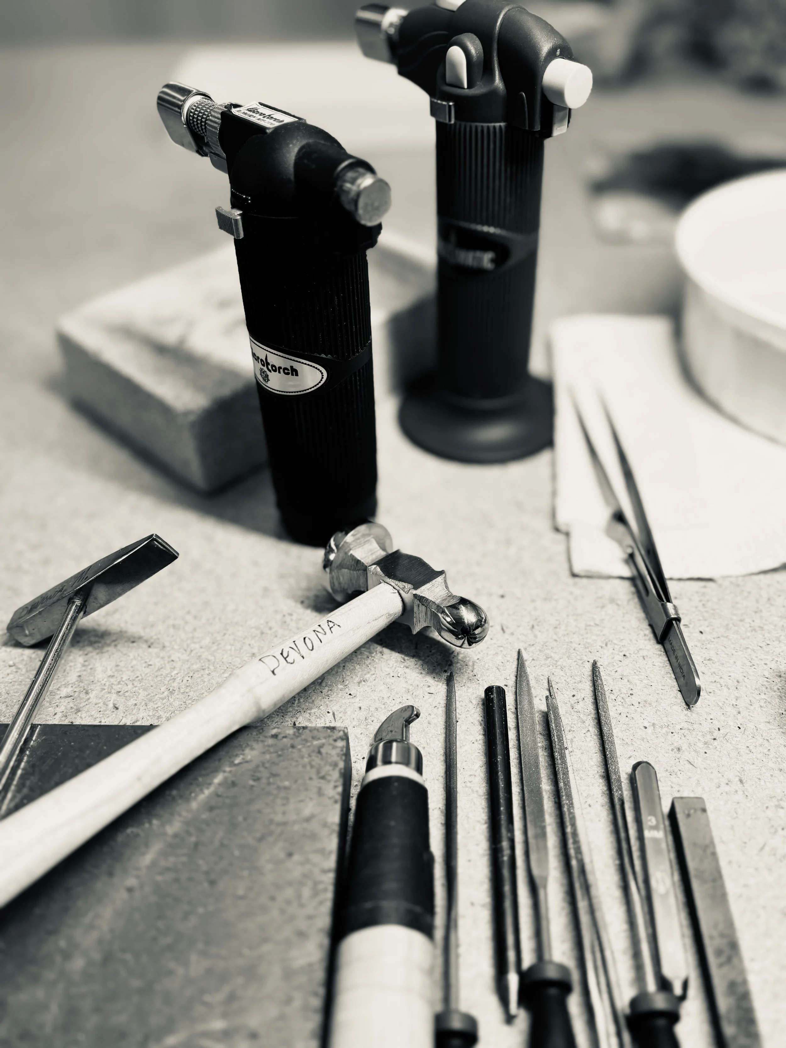My studio blends the rugged charm of a silversmith’s workshop with the airy expressiveness of a painter’s studio. It is my happy place.